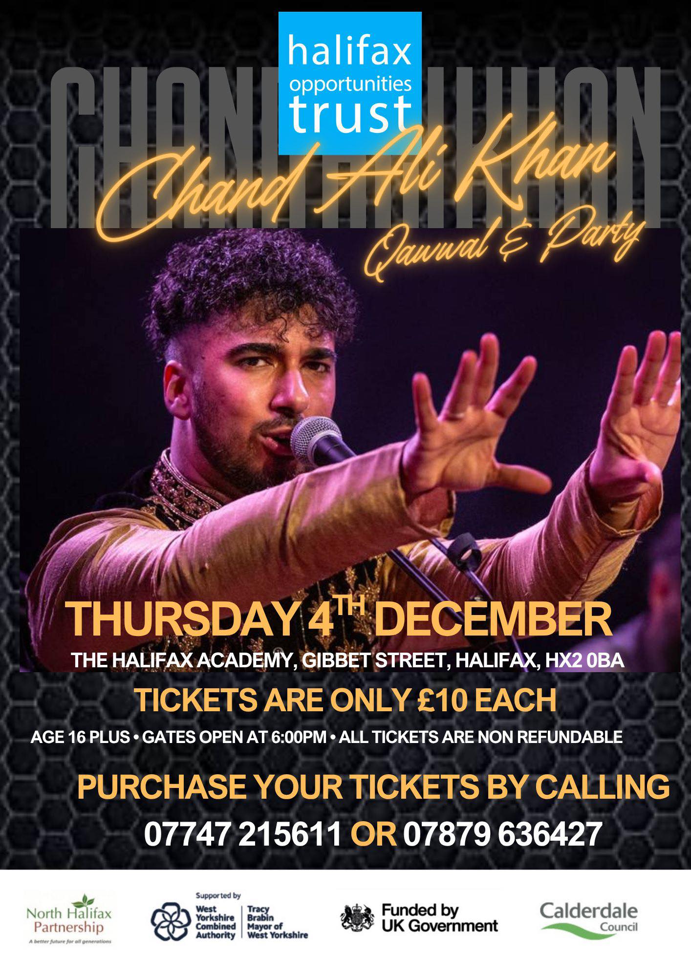 Halifax Opportunities Trust presents a spectacular night of soulful Qawwali and celebration with the amazing Chand Ali Khan!