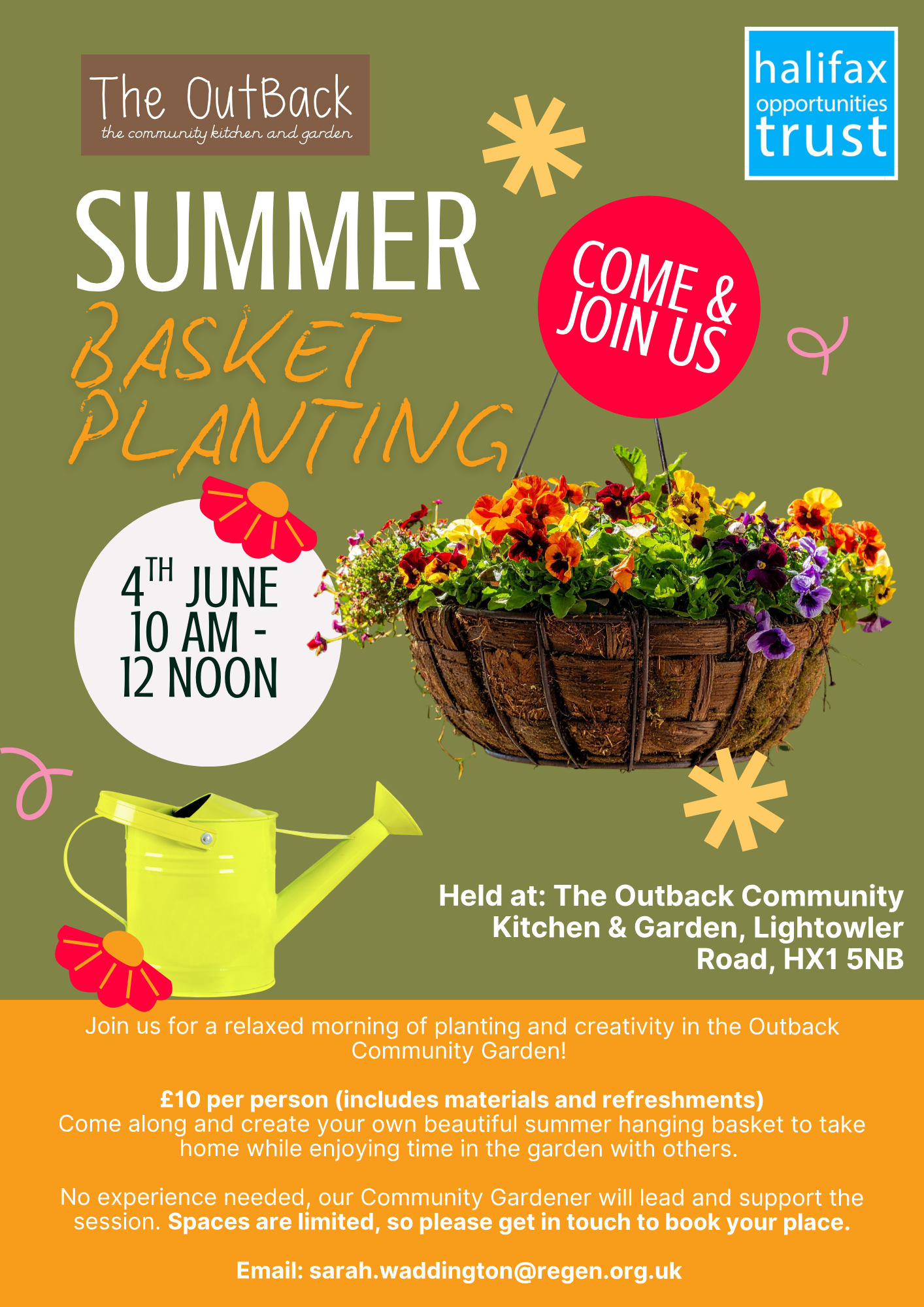 Thursday 4th June, 10 am – 12 noon at The Outback Community Kitchen & Garden, Lightowler Road, HX1 5NB