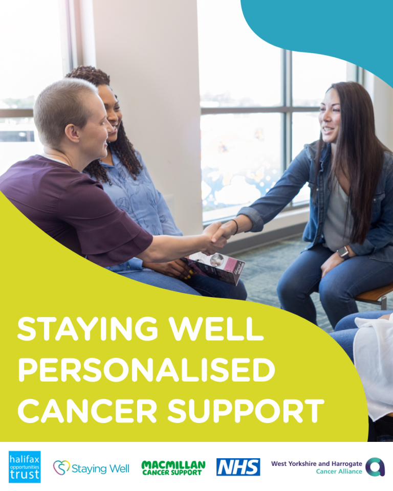 Our Staying Well Personalised Cancer Support team are based at Hanson Lane Enterprise Centre, Jonaid and Anisa are our key workers on this project; they can provide information, advice, and support for people, their families, and carers, who are affected by cancer.